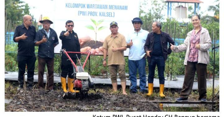 KORAN MERAPI – Ketua Umum PWI Pusat Hendry Ch Bangun mengapresiasi program wartawan menanam yang digagas PWI Provinsi Kalimantan Selatan.