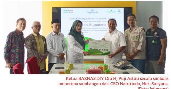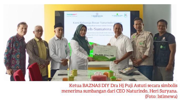 KORAN MERAPI – Badan Amil Zakat Nasional (BAZNAS) Daerah Istimewa Yogyakarta menerima bantuan sedekah kemanusiaan dari PT Naturindo Surya Niaga (NSN) sebesar Rp 186.914.740 untuk membantu saudara-saudara yang terdampak bencana alam di Aceh, Sumatera Utara, dan Sumatera Barat. Bantuan tersebut merupakan hasil dari penghimpunan dana masyarakat yang dikelola oleh PT Naturindo sebagai bentuk kepedulian dan solidaritas terhadap para korban bencana alam di wilayah Sumatera.