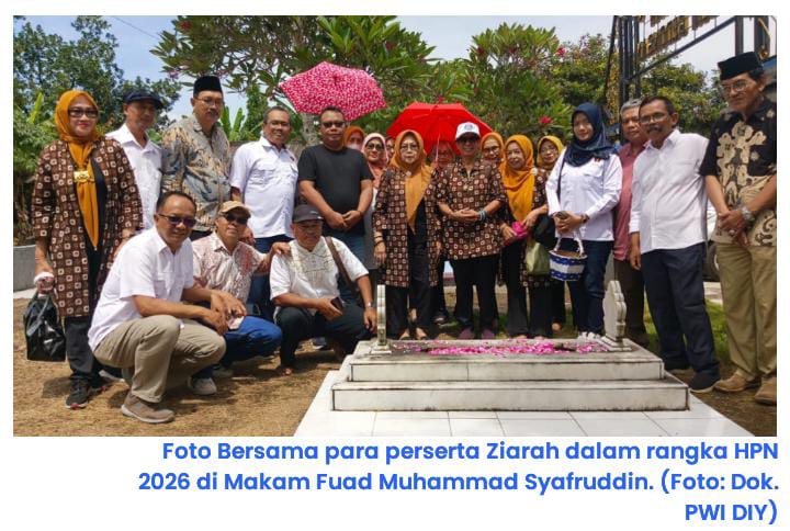 KORAN MERAPI – Dalam rangka memperingati Hari Pers Nasional (HPN) 2026, Persatuan Wartawan Indonesia (PWI) DIY bersama Ikatan Keluarga Wartawan Indonesia (IKWI) DIY menggelar rangkaian ziarah ke makam tokoh-tokoh pers di Yogyakarta, Jumat (13/2/2026). Kegiatan ini menjadi momentum refleksi untuk mengenang jasa para perintis yang telah meletakkan fondasi kuat bagi dunia jurnalistik di Indonesia.