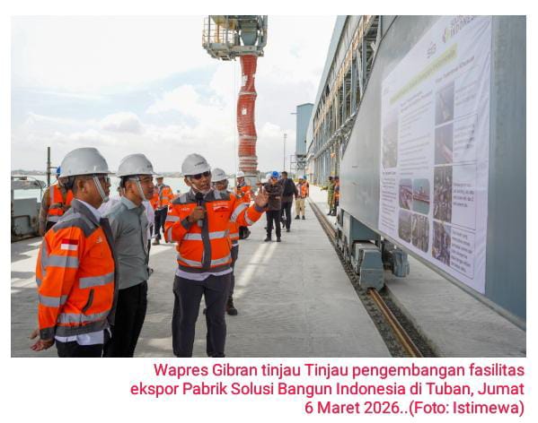 KORAN MERAPI – Wakil Presiden (Wapres) Republik Indonesia, Gibran Rakabuming melakukan kunjungan kerja ke Kabupaten Tuban, Jawa Timur pada hari Jumat, 6 Maret 2026, termasuk untuk meninjau proyek pengembangan dermaga dan fasilitas produksi milik PT Solusi Bangun Indonesia Tbk (“Solusi Bangun Indonesia/Perusahaan”). Dalam kunjungannya, Wapres didampingi oleh Gubernur Provinsi Jawa Timur, Khofifah Indar Parawansa, dan Bupati Tuban, Aditya Halindra Faridzky.