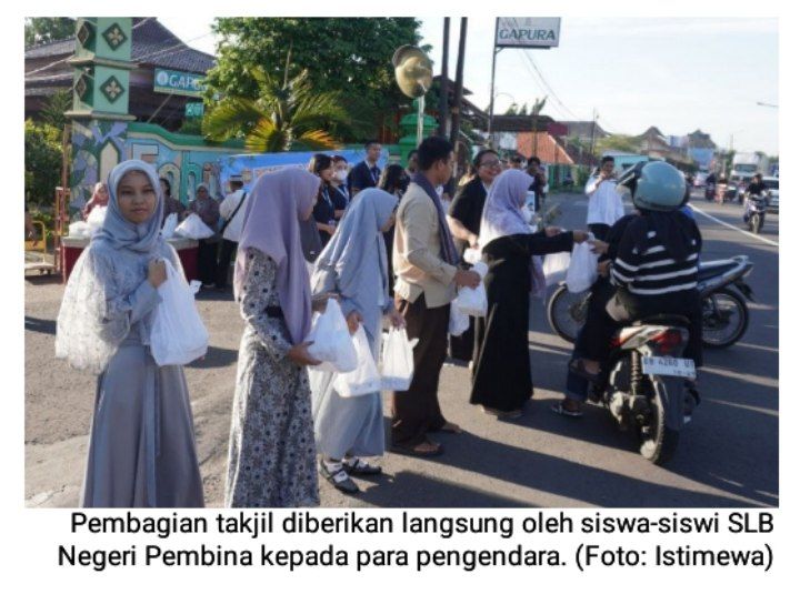 KORAN MERAPI – Semangat berbagi dan kepedulian sosial ditunjukkan oleh keluarga besar SLB Negeri Pembina Yogyakarta. Pada Kamis (12/3/2026) sore, Komite Sekolah menggelar aksi “Takjil on the Road” di depan sekolah yang berlokasi di Giwangan, Yogyakarta. Kegiatan ini menjadi momentum penting dalam membentuk karakter siswa agar memiliki rasa empati dan peduli terhadap sesama.