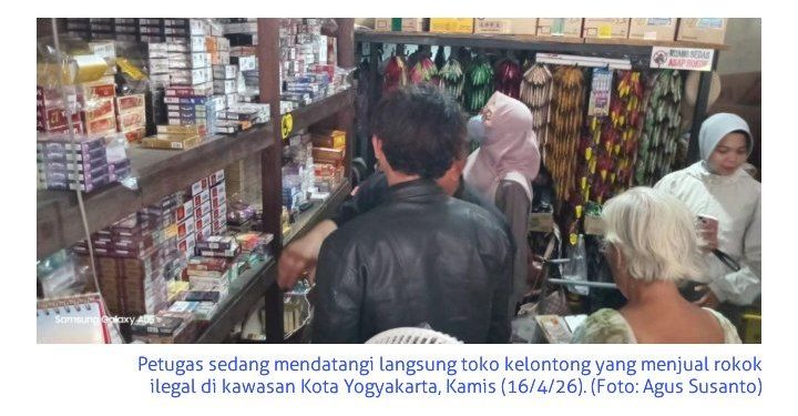 KORAN MERAPI – Tim gabungan Kota Yogyakarta kembali mempersempit ruang gerak peredaran cukai ilegal. Dalam Operasi Target (TO) pengawasan pita cukai yang digelar pada Kamis (16/4/2026), petugas berhasil menyita sedikitnya 1.000 batang rokok ilegal dari dua titik di wilayah Kemantren Umbulharjo dan Kraton.